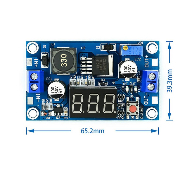 Підвищуючий перетворювач напруги з світлодіодним дисплеєм XL6009E1 DC-DC. Пристрій має широкий діапазон вхідної напруги від 3 до 35 В, і вихідна регульована напруга в діапазоні від 6 до 45 В постійного струму. Завдяки особливій конструкції, перетворювач забезпечує низьку пульсацію, стабільний вихід і може точно регулювати вихідну напругу
